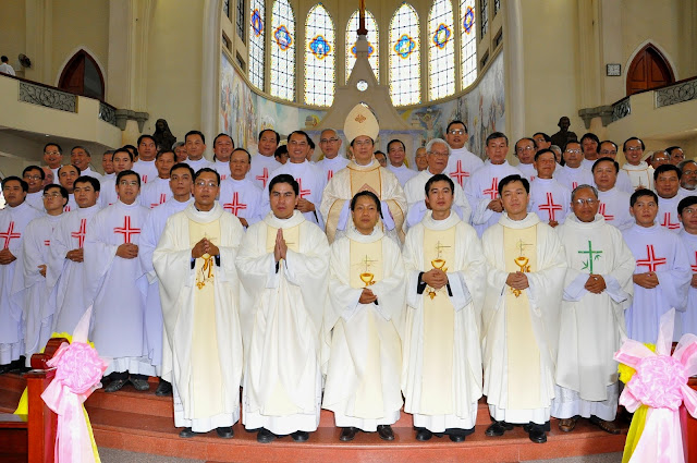 Vào lúc 9g00 sáng nay, ngày 22/01/2016, trong khuôn viên nhà thờ Chánh Tòa Phú Cường, đông đảo bà con giáo dân đã quy tụ về đây để tham dự Thánh lễ truyền chức Linh mục cho 5 thầy Phó tế. Ánh nắng nghiêng làm giảm đi sức nóng, cùng với khối không khí lạnh tràn xuống đã làm tươi vui bao khuôn mặt, làm rạng rỡ bao tiếng nói tiếng cười, cùng với trang phục thanh lịch đã làm cho buổi lễ hôm nay trang trọng hơn.