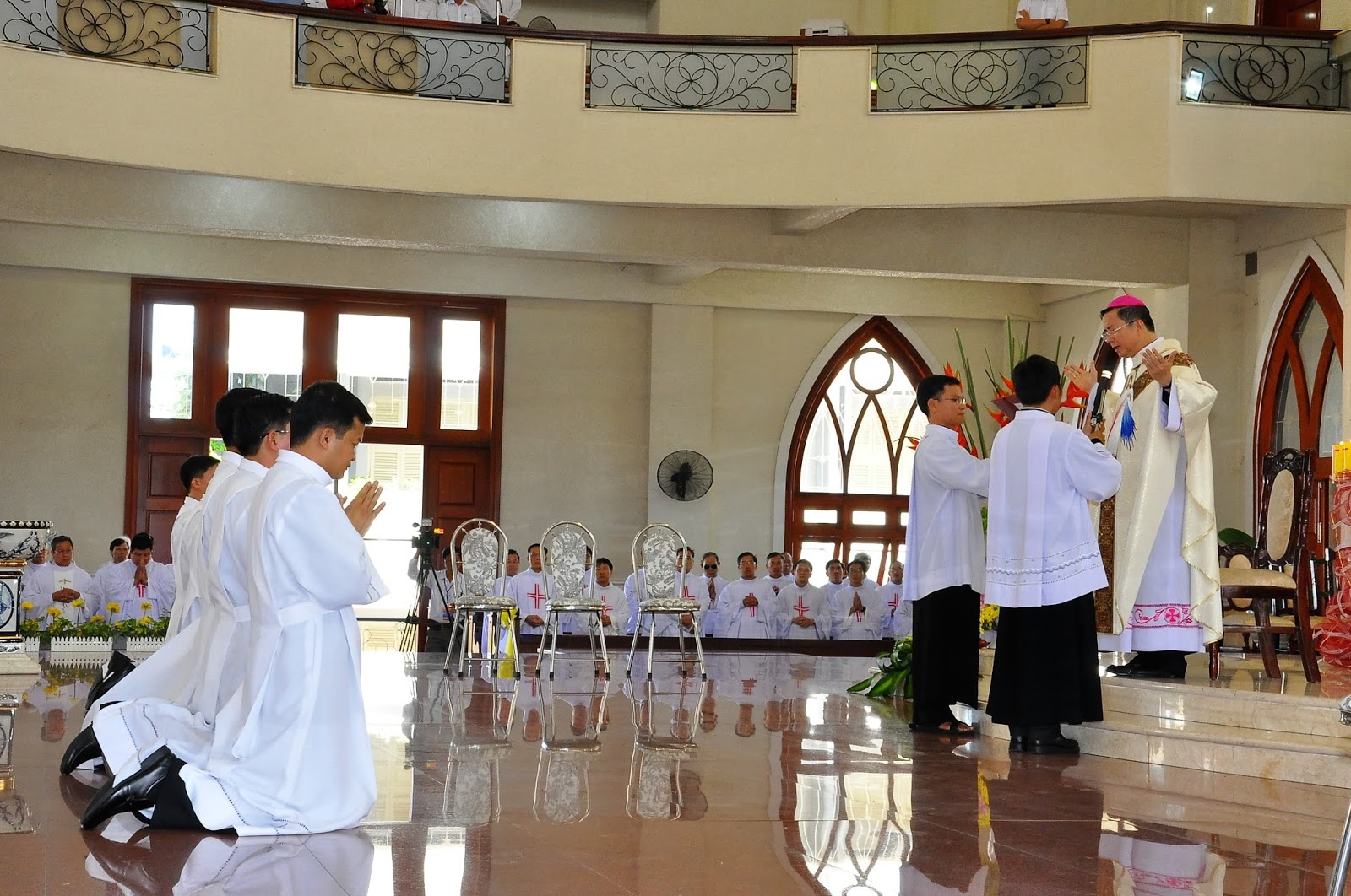 Sáng thứ Hai ngày 27/02/2017, Đức cha Giuse Nguyễn Tấn Tước chủ sự Thánh lễ truyền chức phó tế cho sáu thầy Đại chủng sinh khóa 12 thuộc Giáo phận Phú Cường.